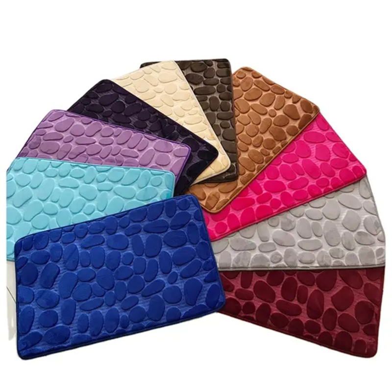3D Pebble Texture Soft Bath Mat Anti-Slip Floor Mat for Bathroom, Bedroom, Kitchen – Maroon (Pack of 1)