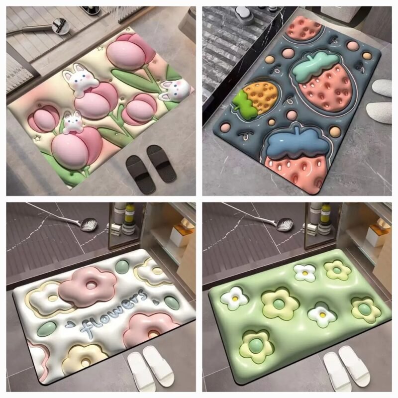 3D Flower Design Anti-Slip Soft Floor Mat for Bathroom & Bedroom (40 x 60 cm) (Pack Of 3)