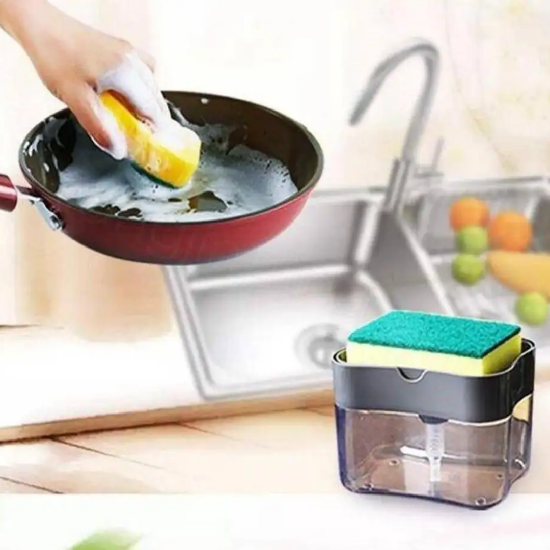 2-in-1 Dish Soap Dispenser with Sponge – Kitchen Countertop Soap Pump | skbazaar.in