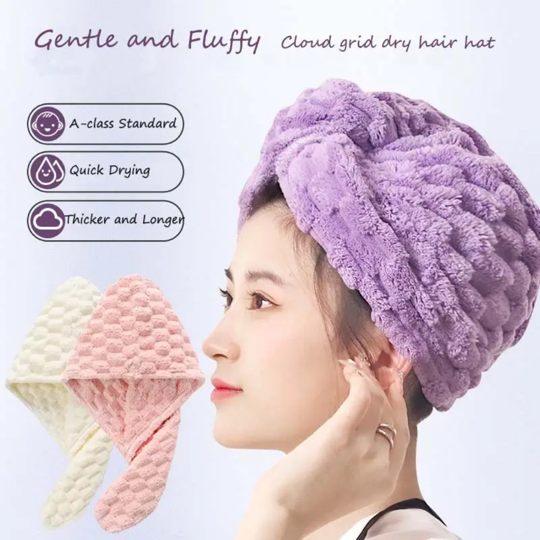 Premium Quality Cloud Grid Microfiber Hair Drying Towel Cap – Quick Dry, Soft & Fluffy